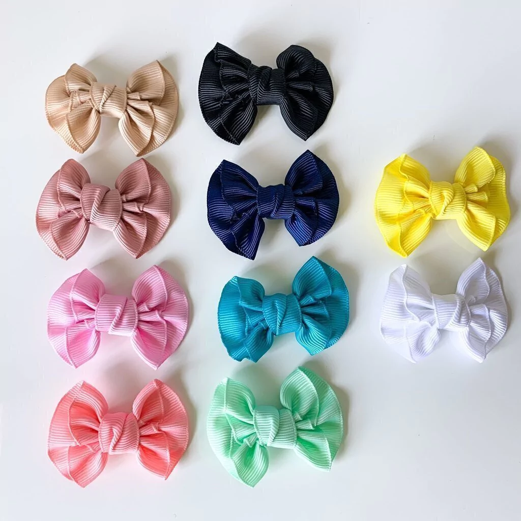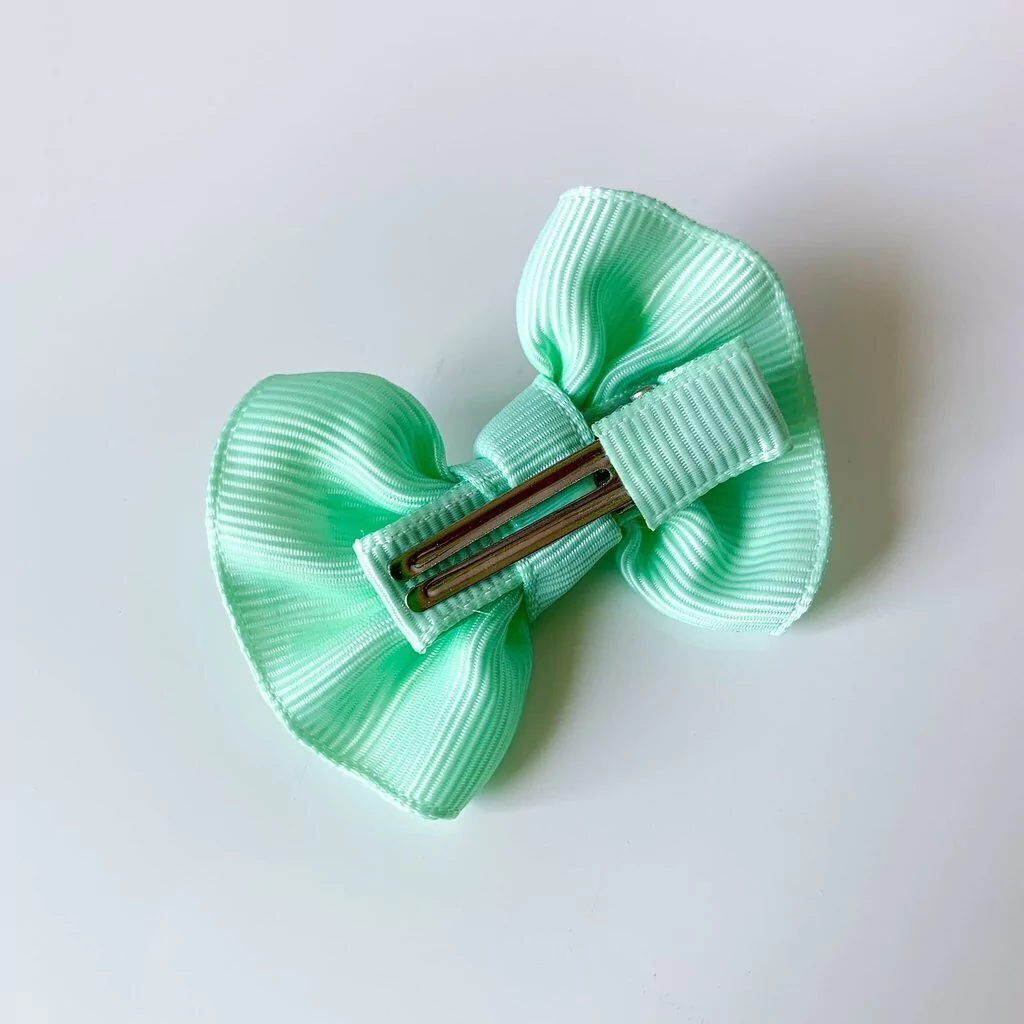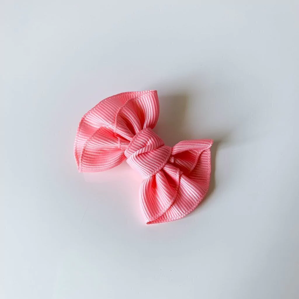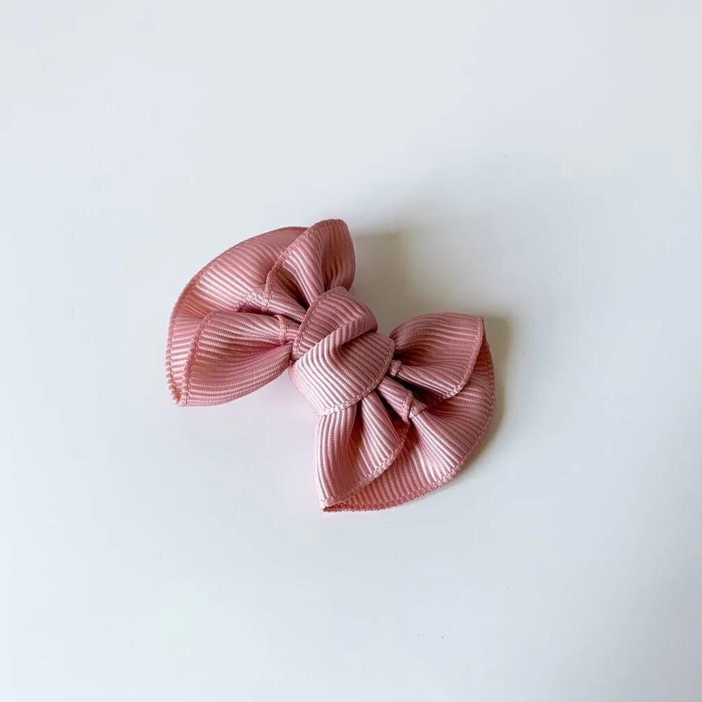 Laço leque na fita de gorgurão com bico de jacaré forrado.